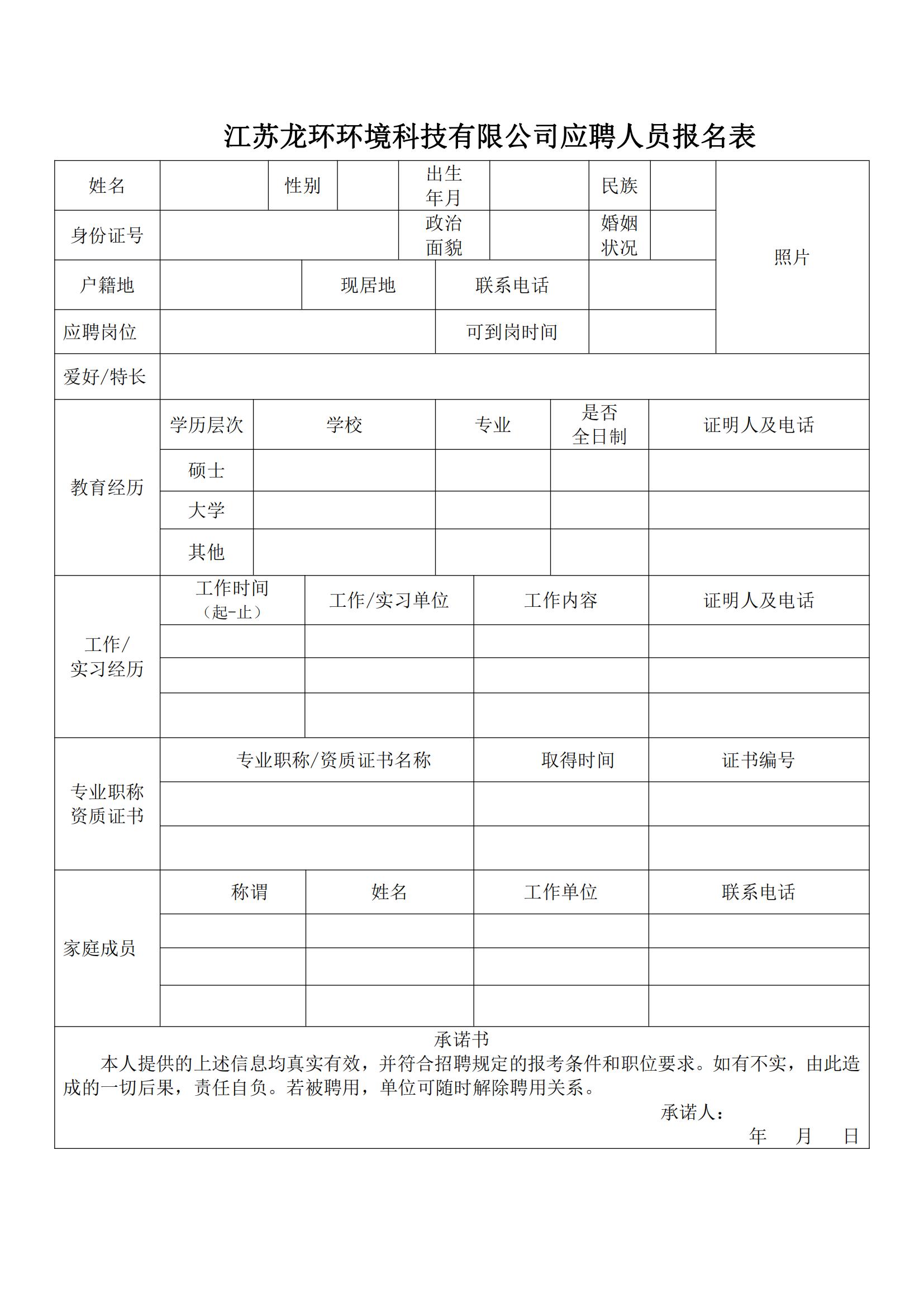 报名人员填写报名表,请在单位网站 http://www.longhuanhj.com 招聘栏下载,报名表及简历以附件形式上传,标题以“求职报名+专业技术人员”命名,单位邮箱:czlonghuan@sina.com